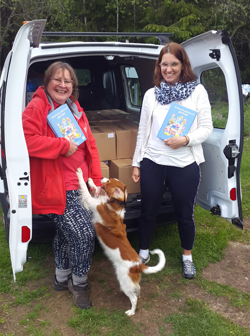Det kom en ny bil in på tomten och Sofie och Magnus hämtade Korpadalsskolans elevers böcker som ska delas ut på onsdag. Det är ett projekt jag har jobbat med eleverna under hela höstterminen 2018 och vårterminen 2019. Nu har samtliga elevers berättelse, från Förskoleklasserna till sjätte klass, samlats i en riktig bok. Jan och jag har sammanställt den och sett till att den blivit tryckt. Den är sååååååååååååå fin. Kotten trodde nog att jag tänkte åka med bilen för han ville följa med...