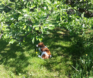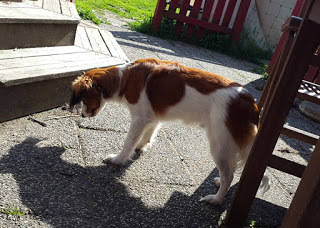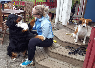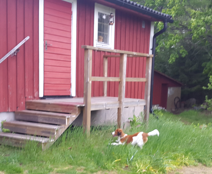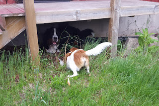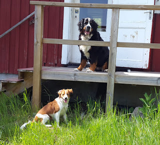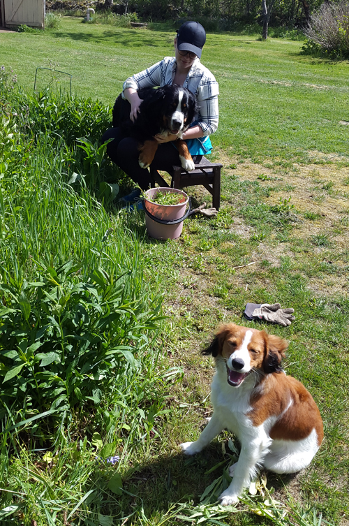 En rätt typisk scen från hur vi har haft det de här dagarna Matilda har varit här. Vi rensar ogräs och hundarna har fördelat sig mellan oss. Kiara mer i knät än vid sidan vilket innebar att det inte alltid blev så mycket gjort. Men vad gjorde det, vi hade det mysigt med hundarna.