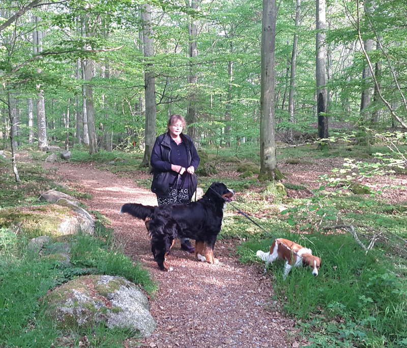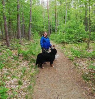 Det är så roligt när någon annan är med på promenaden och kan fotografera mig tillsammans med hundarna. Igår var det riktigt, riktigt kallt, regnigt och blåsigt. Men det hindrade inte hundarna från att bada och inte mig från att ta hundpromenader.
