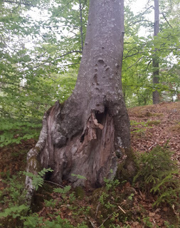 Under vår promenad i Karlsnäs såg vi det här trädet. Halva nederdelen är borta, ett riktigt häxträd som är fint lövad på toppen.