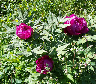 Aldrig tidigare har mina buskpioner blommat så fint som i år. Stora fina blommor och massor av dem. Kanske tack vare förra sommarens sol, eller var det torkan. Kanske tror de att det här är sista gången de är i livet...