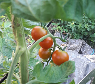 Vi har skördat våra första tomater, supergoda, söta och ljuvliga, som godis. Till dem hade åt vi vår andra egenodlade gurka. Det är vid sådana tillfällen jag känner mig väldigt rik.