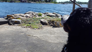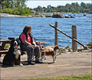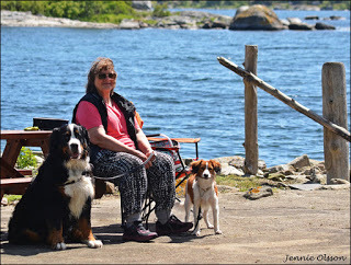 Ett av mina favoritställen är Karlsnäs. Där brukar jag och Kiara gå tipspromenad på söndagarna. Det är perfekt att gå utefter Ronnebyån där Kiara kan svalka av sig med jämna mellanrum. I torsdags, på Kristi Himmelsfärdsdag åkte jag dit, i tron om att jag skulle vara ensam där. Men så blev det inte. LO hade familjedag och det var hoppborgar, korvgrillning, ansiktsmålning och tipspromenad bland allt annat roligt. Det var så mycket folk. Kotten hade fullt upp att hälsa på alla och hinna med att bada och försöka hälsa på alla hundar och inte bli rädd för barnvagnar och... Puh! Jag var helt slut när jag kom fram till bilen. Där stängde jag in Kiara och Kotten medans jag gick runt och såg vad mer det fanns att göra.
