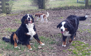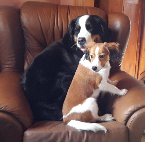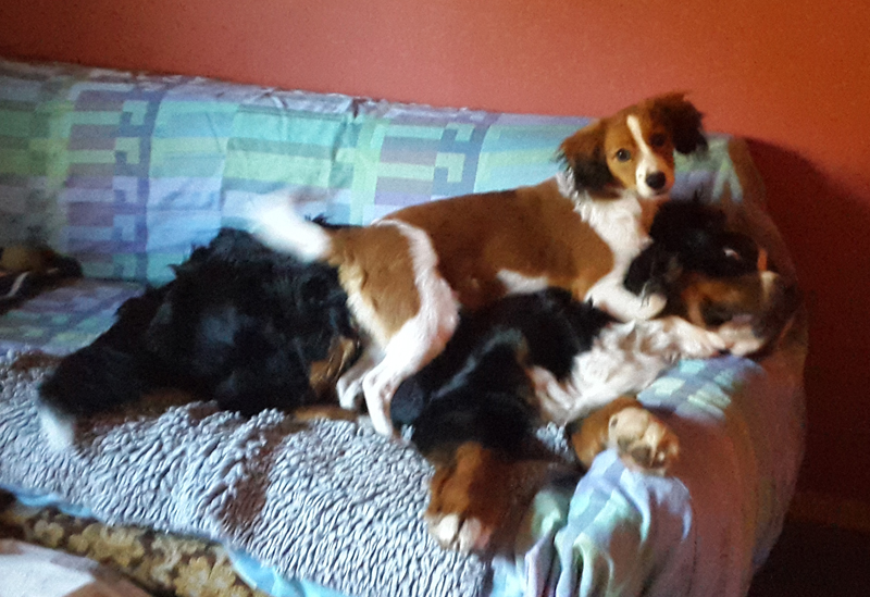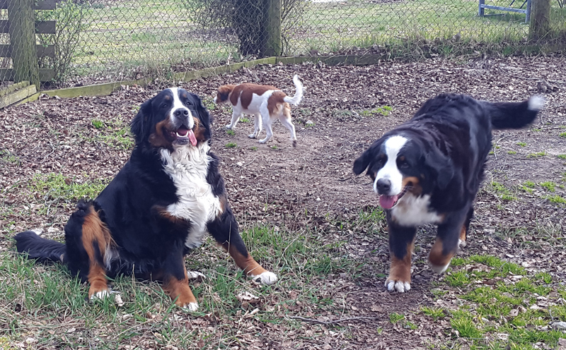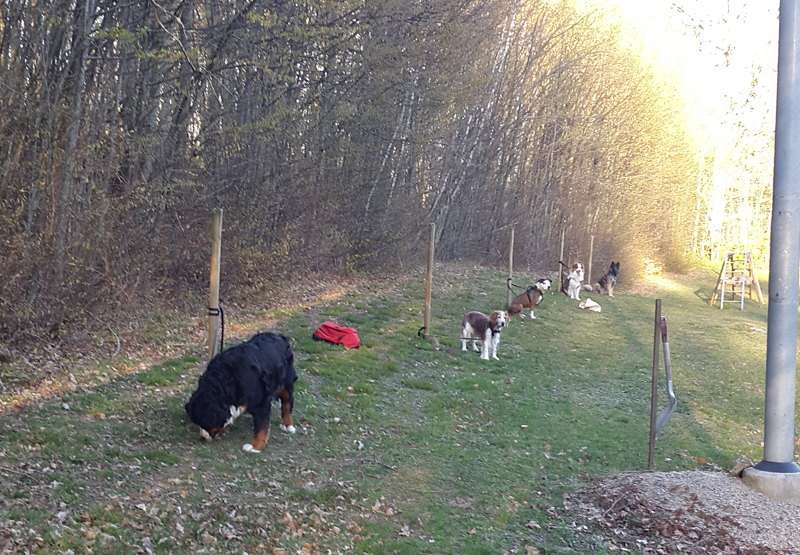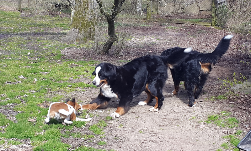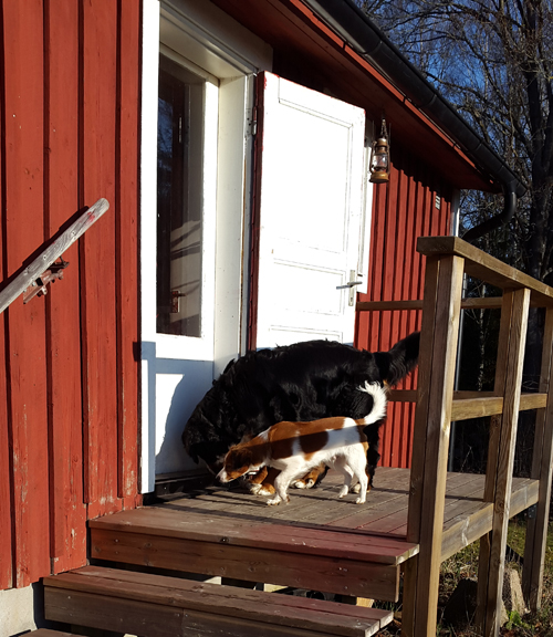 Här bor gästerna. Så spännande tyckte både Kiara och Kotten första morgonen när de nosat upp var de andra hundarna befann sig.