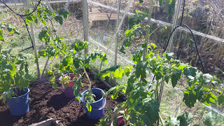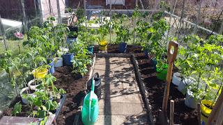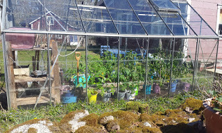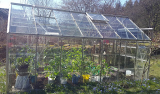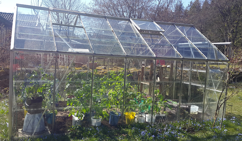 Våren är här, med allt vad det innebär. Med 2 tunnland inhägnad tomt är det mycket att göra. Växthuset kräver också mycket arbete på våren. All jord har bytts ut och ny har körts in, rutorna tvättats och de blommande tomatplantorna står redo för att flytta in.