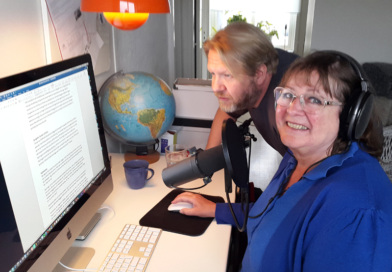 Det är alltid lika roligt, och lite nervöst, att läsa in. Jag stakade mig på helt vanliga ord, bara för att jag i tankarna var vidare i texten. Ett ord fastnade jag för hela tiden och fick göra många omtagningar. Jag lovade mig själv att aldrig mer skriva det ordet i en text jag skulle läsa in.