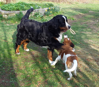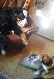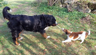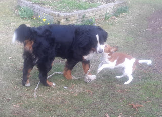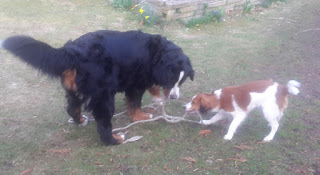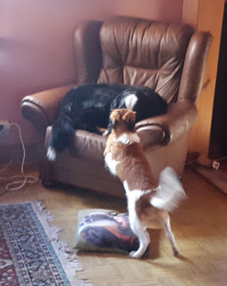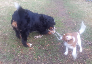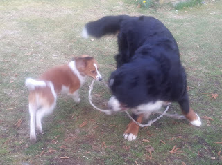 En sak som hundarna upptäckte, eller som husse visade dem, när jag var bortrest förra veckan, var lekrepet. Det är perfekt att ha dragkamp med. Kotten är snabb och studsar runt Kiara som bara behöver vända sig runt hela tiden. En bra lek som innehåller dragkamp, fostran och lek.