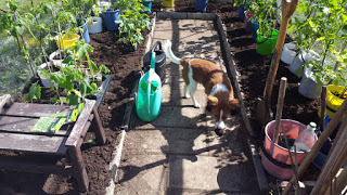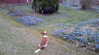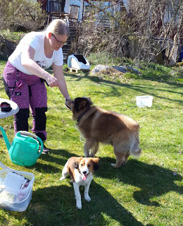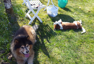 Just nu är det så ljuvligt i mitt Paradis. Det är svårt att vara inomhus, även om vinden är bitande kall. Kotten och Kiara älskar att vara ute med mig när jag arbetar i trädgården. Nyss var de i bild, men försvann i det ögonblick jag tog fotot.