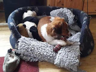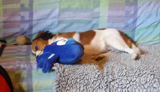Det har varit en händelserik vecka för Kotten. Valpkurs, nya hundar som kommit och bott hos oss, utflykter och nya lärdomar. Just nu skuttar han omkring i hundgården utanför fönstret och leker med en mjuk boll. En sak han har hittat i leksakslådan alldeles nyligen.