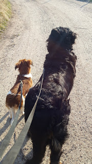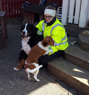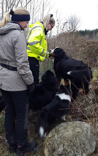 En förstående kursledare som lät mig gå ett lätt, tidigt spår för att sedan återvända till klubbstugan, medan de andra arbetade vidare i skogen. Jag intog nya huvudvärkstabletter och kände hur stressen rann av mig. Jag älskar att vara på brukshundsklubben, alla trevliga människor, mina hundar blir så glada och jag bara är. Okej, jag jobbar med hundarna också. Något som var rätt jobbigt igår när huvudet inte riktigt hängde med. Men som jag sa till Anna och Astrid tidigare den dagen "Om jag har kunnat genomföra Bokmässan under fyra dagar med ett sönderslaget, nyopererat knä, då klarar jag allt."