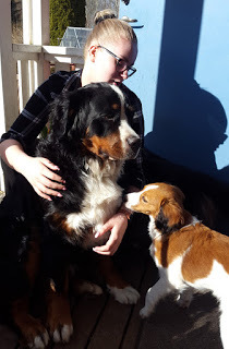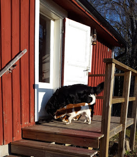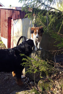 Kotten blev så glad över att träffa Smilla igen. Hon tillhör vår flock eftersom hon levt halva Kottens liv med oss (i alla fall den tid han har bott hos oss). Han saknade Smilla när hon försvann och det här var första gången han träffade henne sedan dess.