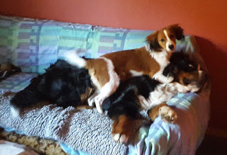 De låg nära varandra, när de inte travade omkring i trädgården. Men gårdagen var riktigt, riktigt varm och det blev ingen full fart med lek.