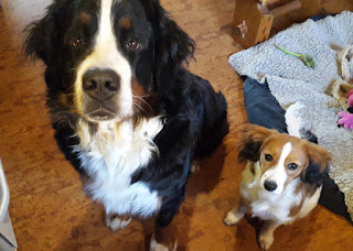 Vi hade ju besök av Åttan och Ellie, med matte Anki och Matilda. Här är hela flocken samlad i vår hall.