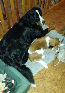 Är man valp så är man. Kiara håller fortfarande Kotten ren när han kissat. Perfekt att passa på att slicka när han står uppe på stenen.