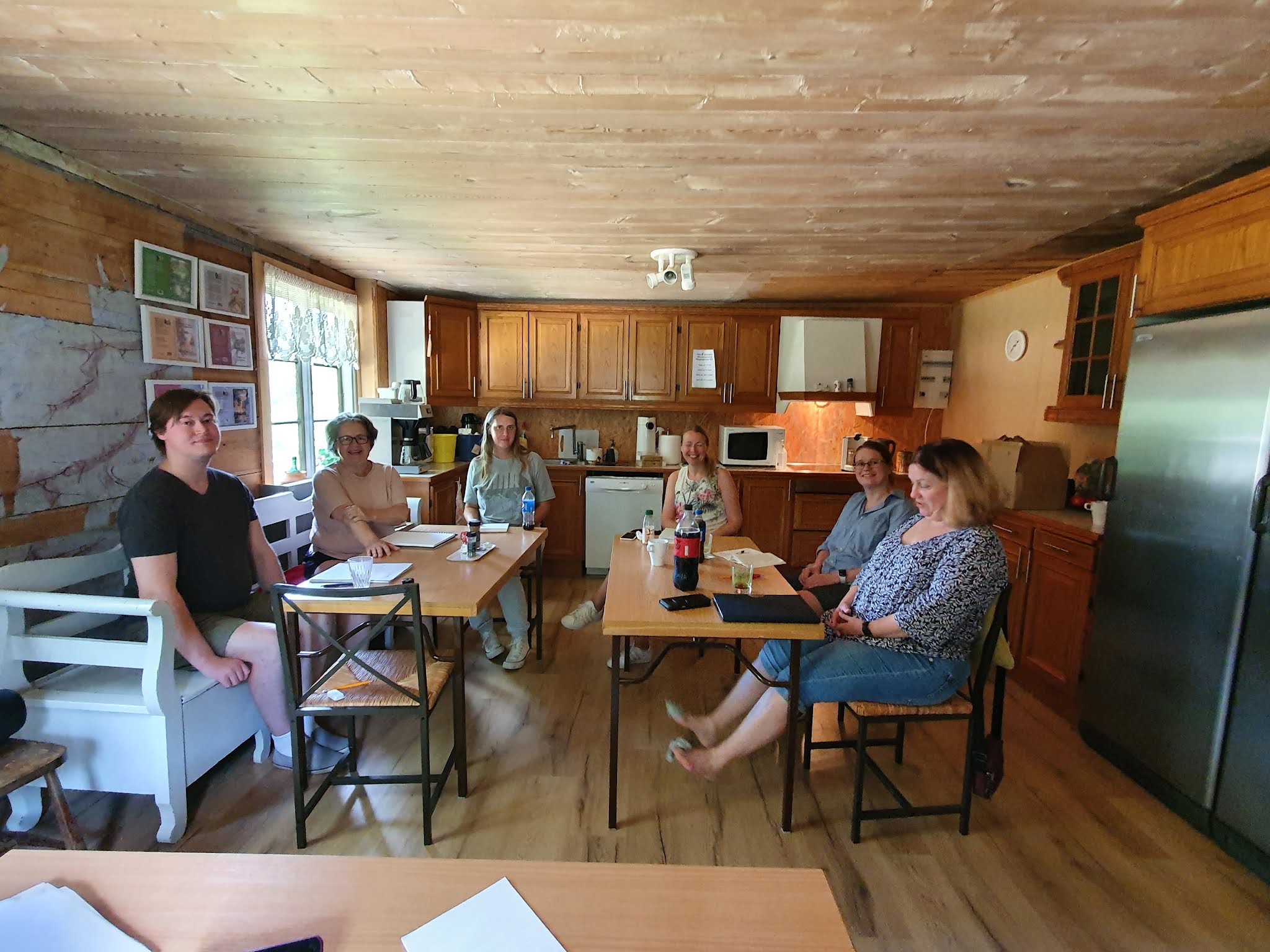 I år satt vi mycket i köket och jobbade. Både för att det var lätt att hålla avstånd, men också för att där fanns en luftkonditionering och det var varmt, 27 grader ute.