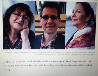 På Bokmässan i Göteborg hösten 2018 kom Jonny Mattiasson fram till mig i montern och undrade om han fick bli min nya agent. Han sa att han visste vilken bra kvalité mina böcker höll, därför ville han bli min agent.