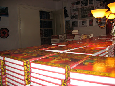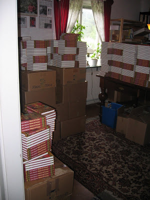 DHL kom och hämtade våra paket och körde ut dem till bokhandlarna. Vi hade ett par hundra böcker av varje titel hemma, så det var fortfarande väldigt många böcker, men nu på begränsade ytor.