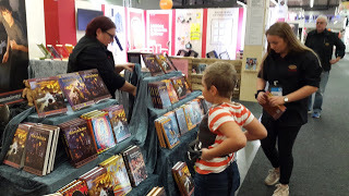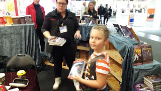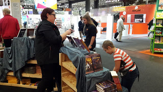 Han älskar bokmässan och har varit med där ända sedan han var 3 månader, nu är han 8 år och han har längtat efter att bli så stor så han kunde hjälpa mig i montern.