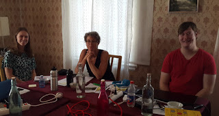 Jag tror min kamera måste ha fått värmeslag i helgens hetta, runt 30 grader och mullrande åska. Många av bilderna har tyvärr blivit suddiga. Eller så beror suddigheten på att jag var så tagen av deltagarnas berättelser. Här är det Erica, Annika och Alexander på kortet.