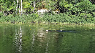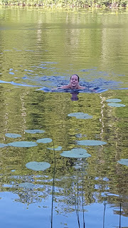 Togölen ligger vid Färgargården och den var flitigt utnyttjad den här helgen, där termometern hela tiden låg runt +30 gradersstrecket. Här är det Tilda som njuter av ljummet, vatten, solen och näckrosorna.