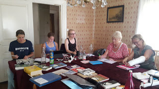 Här är kurslokalen från en annan vinkel. Jag beundrar Carin som trots bruten arm tog sig till kursen, tack vare Eva som hämtade henne. Det kallar jag skrivmotivation! Bra gjort av er båda!
