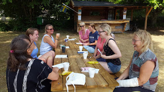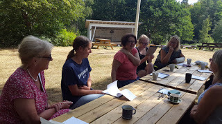 Den här gången gick det bara inte att vara ute i solen, eftersom det var alldeles för hett där. Men i skuggan trivdes vi och det blev många glada skratt när berättelserna lästes upp: