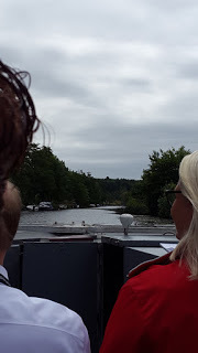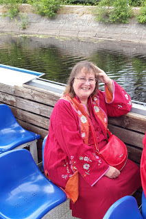 Igår var det alltså dags för den stora invigningen. Maken och jag åkte från Ronneby, på båten Astrid som dagen till ära hade fått nytt namn och döptes i Ronneby hamn. Här ser du mig på båten innan avfärd.