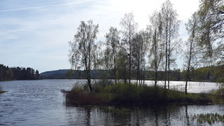 Förra veckan var intensiv. Jag var iväg på både researchresa och föreläsning/skrivarkurs. Jag hade tur med vädret och det var rejält varmt. På söndagseftermiddagen anlände jag till Lilla Hotellet i Tranemo. Eftersom det var sommarväder och jag hade spring i benen efter den långa bilkörningen tog jag en promenad runt sjön i Tranemo.