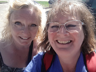 Ingrid berättade att hon hade varit på två guidade turer tidigare på slottet, men aldrig fått höra så mycket som denna gången. Tiden hade rusat iväg och det blev inte lunch förrän långt efter två. Precis innan vi skulle skiljas åt kom vi på att vi inte hade ett enda foto av oss tillsammans. Varma, trötta och mätta skyndade vi oss att ta en selfie på parkeringen.
