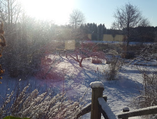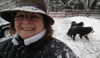 Som du ser på bilderna fick vi en hel del snö igår. Innan jag fortsätter skriva ska jag ut och plumsa runt i snön tillsammans med alla hundarna.