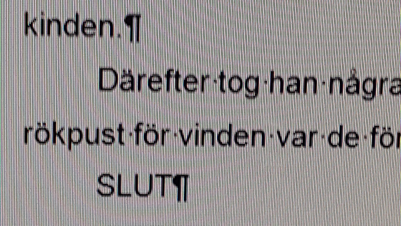 Titta även på när det görs blankrader i berättelsen. Lägg märke till att det görs när en viss tid har förflutit eller när det är andra personer som kommer in i handlingen.