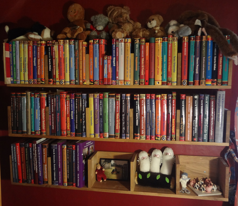 Tack vare mitt idoga arbete har jag nu en bokhylla fylld av böcker som jag har skrivit under mina 21 år som författare. I den här bokhyllan finns även böckerna på de olika språk de är utgivna. Det är inspirerande att se. Om jag någon dag tvivlar på skrivandet, då är det bara att titta på alla böckerna i bokhyllan för att fyllas av skrivglädje igen.
