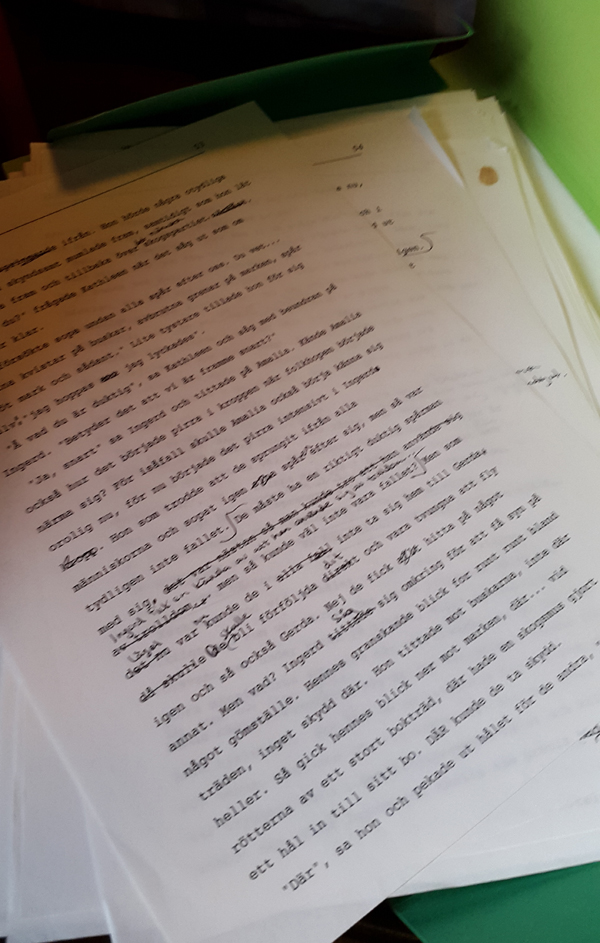 Bara och bara. Under de snart 30 år som har gått sedan manuset skrevs har jag utvecklats en hel del som författare. Därför bearbetar jag texten under tiden jag skriver in. Låter det som mycket jobb? Nejdå, jag har vanan inne, det räcker att jag slänger en blick på texten, sedan omformulerar jag den medan jag skriver. Snabbt och lätt. Nu gäller det bara att få boken inskriven i tid och korrekturläst. För självklart är det en deadline. Jag har drygt en vecka på mig. Jag skriver på...