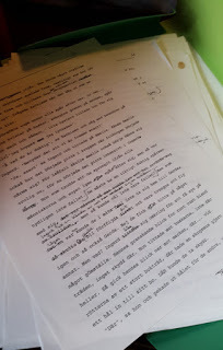 Det är ett kladdigt manus som skrevs innan datorn var uppfunnen, iallafall innan jag hade någon, vilket innebär att allt är skrivet på maskin. Det är bara att skriva in manuset i datorn.