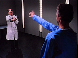 Experiment not exactly smooooth sailing. Lab blow up. Victor badly injured! Reed go to visit him at hospital but creepy Borat doktors tell him dat Viktor dead.