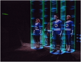 Military take dem to lab where goofy doktor examine dem. Nyuk nyuks ensue. Thing sit and break chair. Johnny scare doktor with flame. Sue startle doktor and cause him to stick hisself wit needle. Reed uses stretchy arm to take needle from doktor. Ho ho ho!