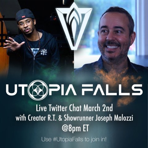 Monday night, I’ll be doing a live twitter chat with Utopia Falls creator R.T. Thorne. WHAT, pray tell, is a live twitter chat? Well, I suppose it’s like a regular twitter discussion except that I get back to you sooner. And someone, perhaps only tangentially connected to the discussion, will, at some point, post a gif.