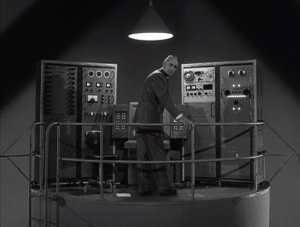 Forbidden Planet (1956) breakout star Robby the Robot makes his third and final Twilight Zone appearance. According to episode director Richard Donner: “Robby had been on the MGM lot. We redressed him a little, painted him differently, and put another light on top of his head. He was in fairly good condition. In those days studios had great pride in their prop and wardrobe departments, so when you went to get something, there was no problem.”