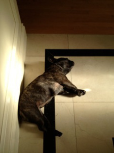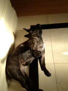 To be perfectly honest, there was only one thing I missed during my trip to Japan. And it wasn’t the food or the television or the general comforts of home. It was the dogs. Even Akemi, who admittedly never “got” dogs before coming to Canada, could think of nothing but her dear Bubba those last few days in Tokyo. It was nice to know that they were in great hands. Our dog-sitter, Christine, stayed at the house with them, sending us daily updates and, occasionally, photos.