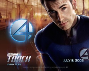 The Human Torch. Powers = Flaming, flying, and general douce-baggery.