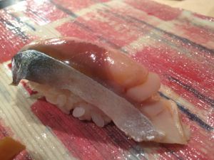 Saba (chub mackerel), lightly cured with salt and vinegar.