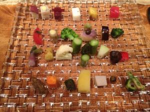 A mosaic of between 28-30 organic vegetables from Yamanashi. This dish was a blast to eat, offering up an incredible variety of tastes and textures.