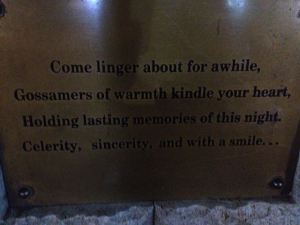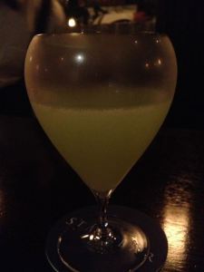 Sorry. By the time I finished it, I realized I’d forgotten to snap a pic. I toyed with the idea of hanging around and getting a photo of our neighbor’s plate but ultimately decided to go with this. What you missed: Grape sorbet from Kyojo with whipped grape champagne creme brulee and a confit Porto, topped with an anise treat.