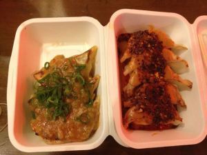 Akemi preferred the version with pork and seafood. I liked the one pictured here with the beef gristle (that’s how it’s described on the menu), green onions and a raw egg.