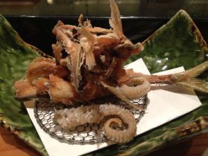 The bones of the mackerel are deep-fried, salted, and served up. I’m thinking of serving these instead of chips for my next football party.