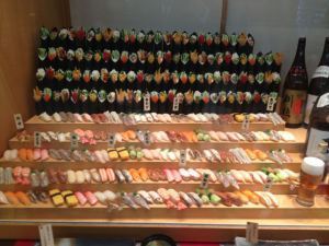 I quite like the timing of the flights both to and from Tokyo. On the way there, the flight departs in the mid-afternoon, giving you plenty of time to sleep in and do your last minute checks and cross-checks before jetting off. By the time you get in, you’re thoroughly exhausted so that, once you’ve touched down, completed the 90 minute ride from Narita airport, checked in, and had a late meal, you’ll be read for bed – at about 9:30 – 10:00 p.m. local time – which is about 4:00 a.m. or 5:00 a.m. Pacific Standard Time. If you keep to this schedule, you’ll be waking up at 6:00 in the morning every day, ready for a sushi breakfast at Tsukiji Market, followed by a nice full day and early night.
