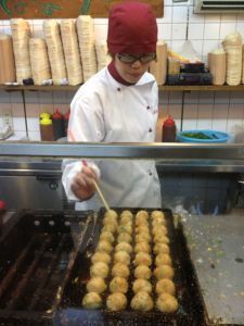 Osaka’s famed takoyaki (batter-fried octopus balls).