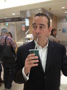 We woke up early to pack, check out, leave our bags with the concierge, and then meet up with Akemi’s father for a final lunch before boarding the shinkansen back to Tokyo. I had expressed an interest in ramen so Akemi’s suggested, Ippudo, a place near his office. I was feeling daring so I decided to go with the spicy tonkotsu soup. I had a choice between 3, 5, and super spicy (3 or 5 what?) and selected the latter. After all, how hot could it be? As it turned out, pretty damn hot. The endorphin rush hit me so hard I feared I would pass out. I wound up transferring my noodles to Mr. Aota’s unfinished soup base – and still could only manage to finish half of it. In retrospect, it was the wrong choice given the fact that we’d already checked out of the hotel and I had another two hours to kill before boarding a train for the two and a half hour trip back to Tokyo. As it turned out, however, I felt great and experienced no ill effects of the molten ramen.