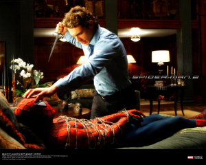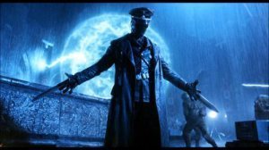 While Hellboy follow agent John Myers out on a date, trying to make de moves on Liz Sherman, bald guy in bathrobe sneak into Professor’s study and, wit help of henceman, Slashy McStabby, he kill him.