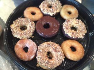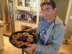 It was a lower than expected turnout (four of us instead of the expected ten) so I had a bunch of leftovers. As Tobias was leaving, I made sure he took home a bunch of donuts and cookies, a package of bread – and a second package of bread I tucked under his warm as he headed out the door. After all, the last thing I need are distractions. I’ve got to get in shape for Tokyo where I expect I’ll be doing a lot of eating (or, in a worst case scenario, running from Mount Fuji lava).